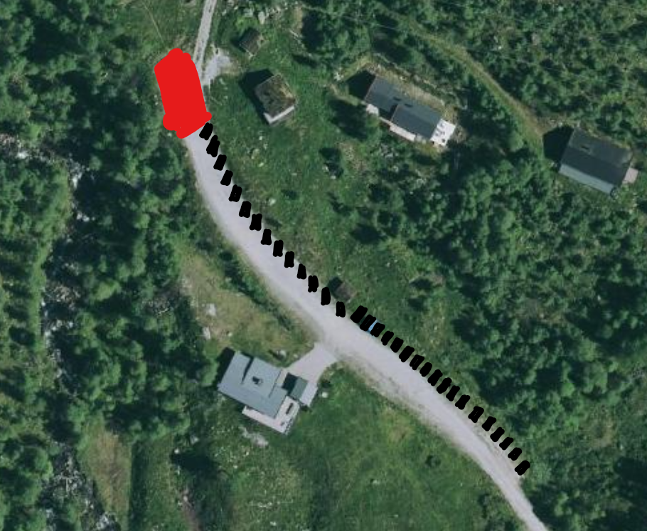 Snuplass øverst på parkeringsplassen og skråparkering i bakken